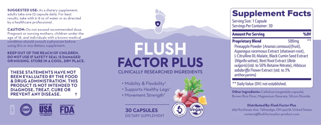 Flush Factor Plus was designed to address three key drivers often behind swollen legs, ankle discomfort, and joint stiffness: fluid retention, circulation, and inflammatory overload that limits mobility.